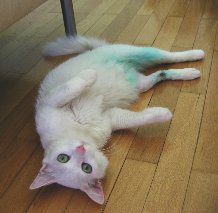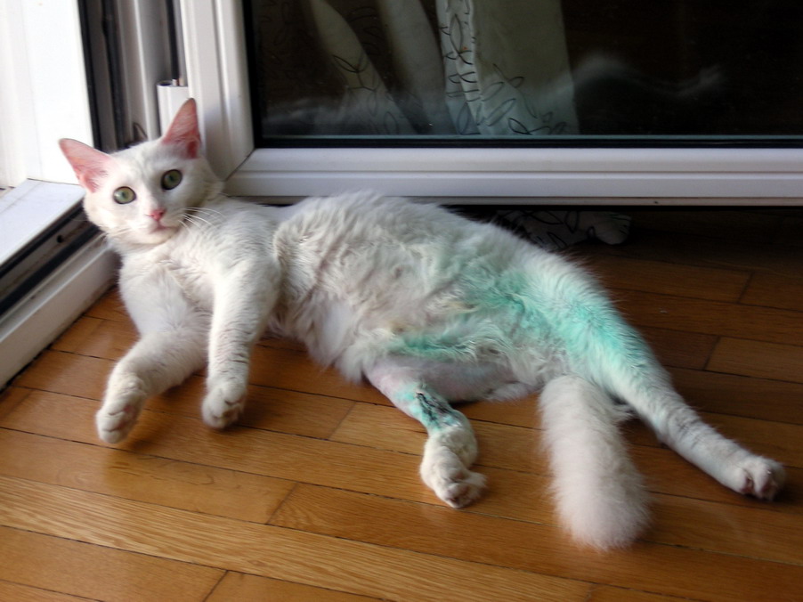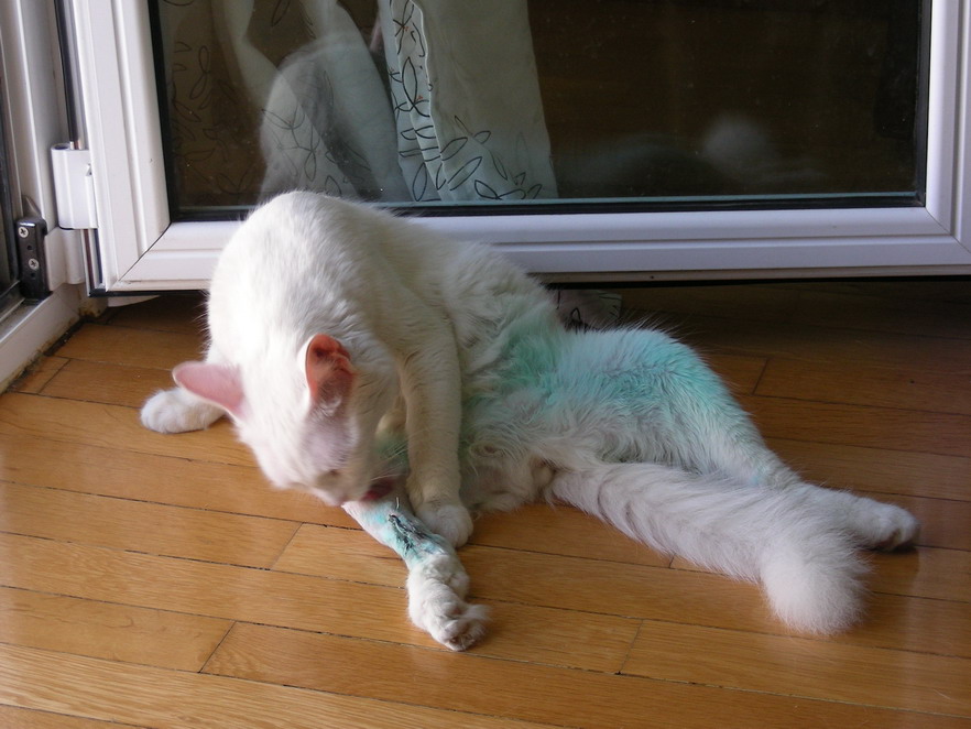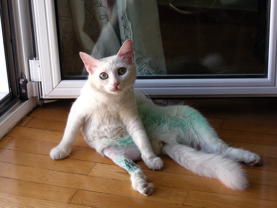 Το μόνο διαφορετικό που κάνει είναι ότι πλέον ξαπλώνει και από την πλευρά του εγχειρισμένου ποδιού (ενώ στην αρχή το απέφευγε) και ότι τώρα δεν το κρατάει πια τόσο ψηλά, το αφήνει να αγγίζει το πάτωμα (χωρίς όμως να το πατάει καθόλου). Χτες, την ώρα που τη χάιδευα, της άγγιξα το πατουσάκι πάρα πολύ ελαφρά και νιαούρισε σαν να ενοχλήθηκε, μάλλον την πονάει.