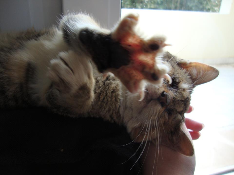 Ναι, μοιάζει πολύ αυθεντικό τιγράκι! Μακάρι να βρει σπιτάκι που το χρειάζεται τόσο πολύ η μικρούλα :/: